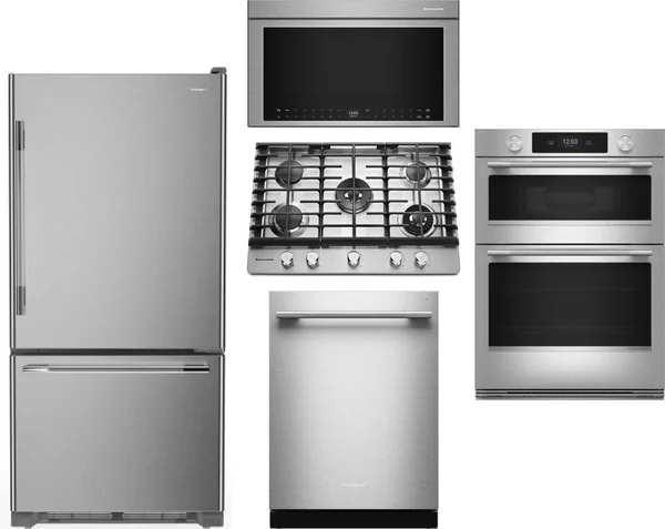 KitchenAid 5 Piece Package Includes Refrigerator, Cooktop, Wall Oven, Microwave And Dishwasher