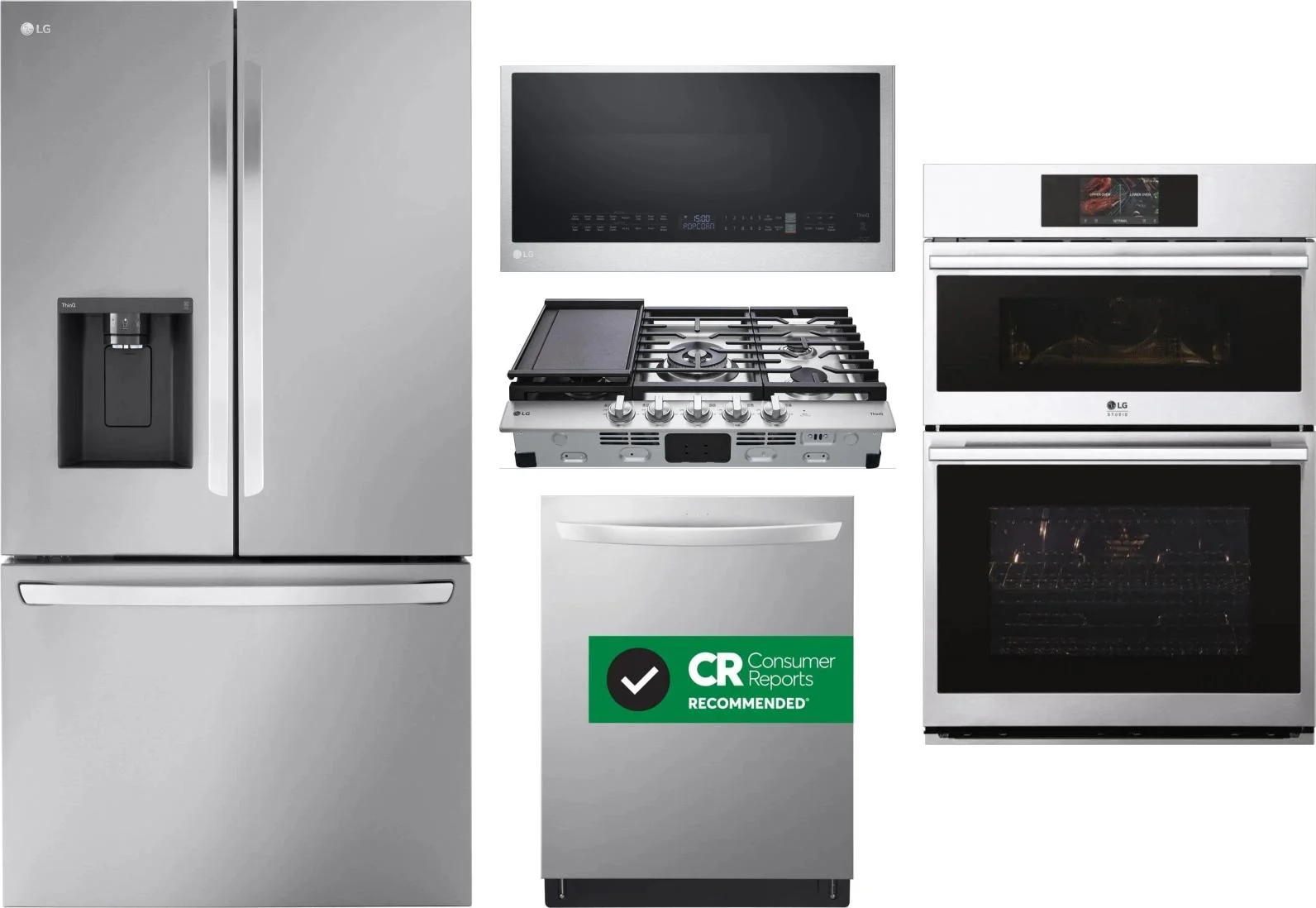 LG 5 Piece Package Includes Refrigerator, Cooktop, Wall Oven, Microwave And Dishwasher