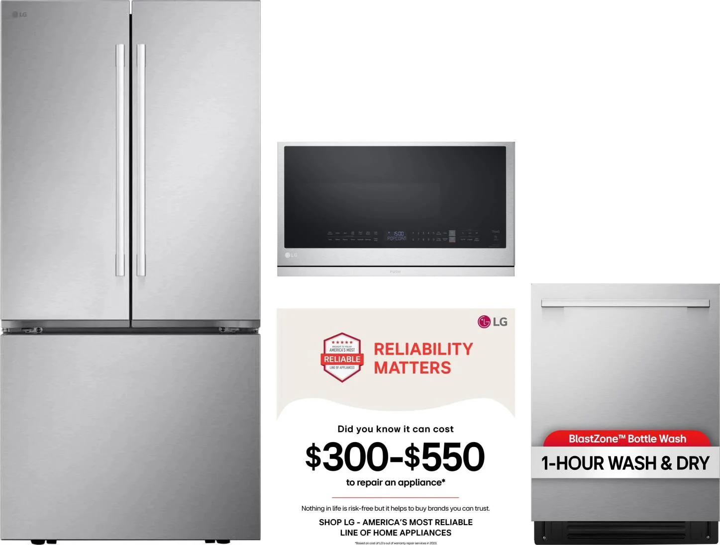 LG 4 Piece Package Includes Refrigerator, Range, Microwave And Dishwasher