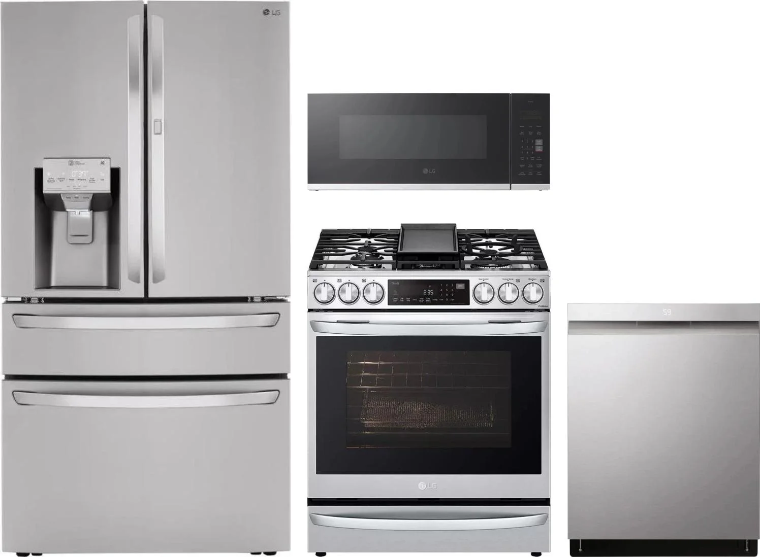 LG 4 Piece Package Includes Refrigerator, Range, Microwave And Dishwasher