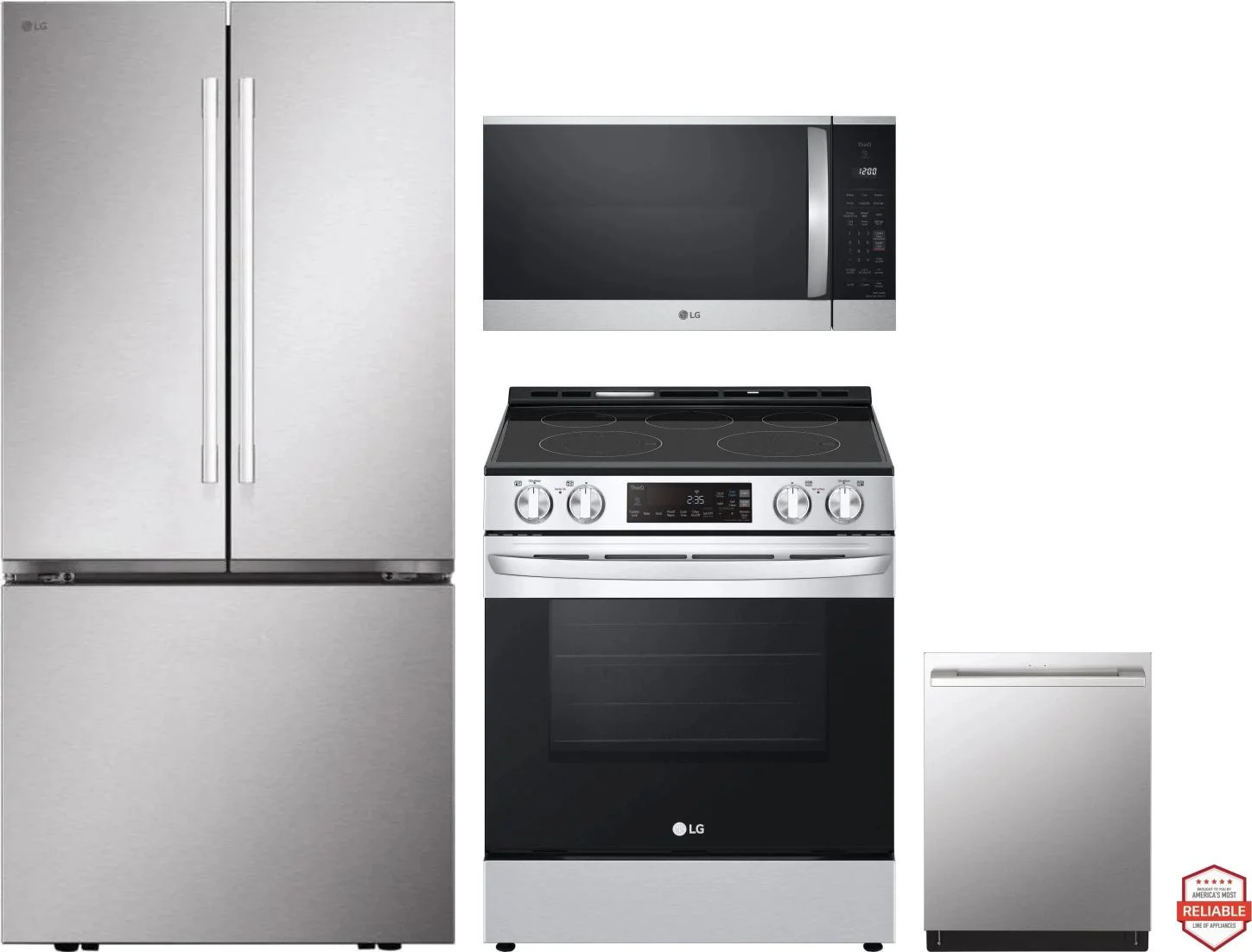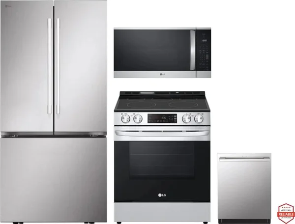 LG 4 Piece Package Includes Refrigerator, Range, Microwave And Dishwasher