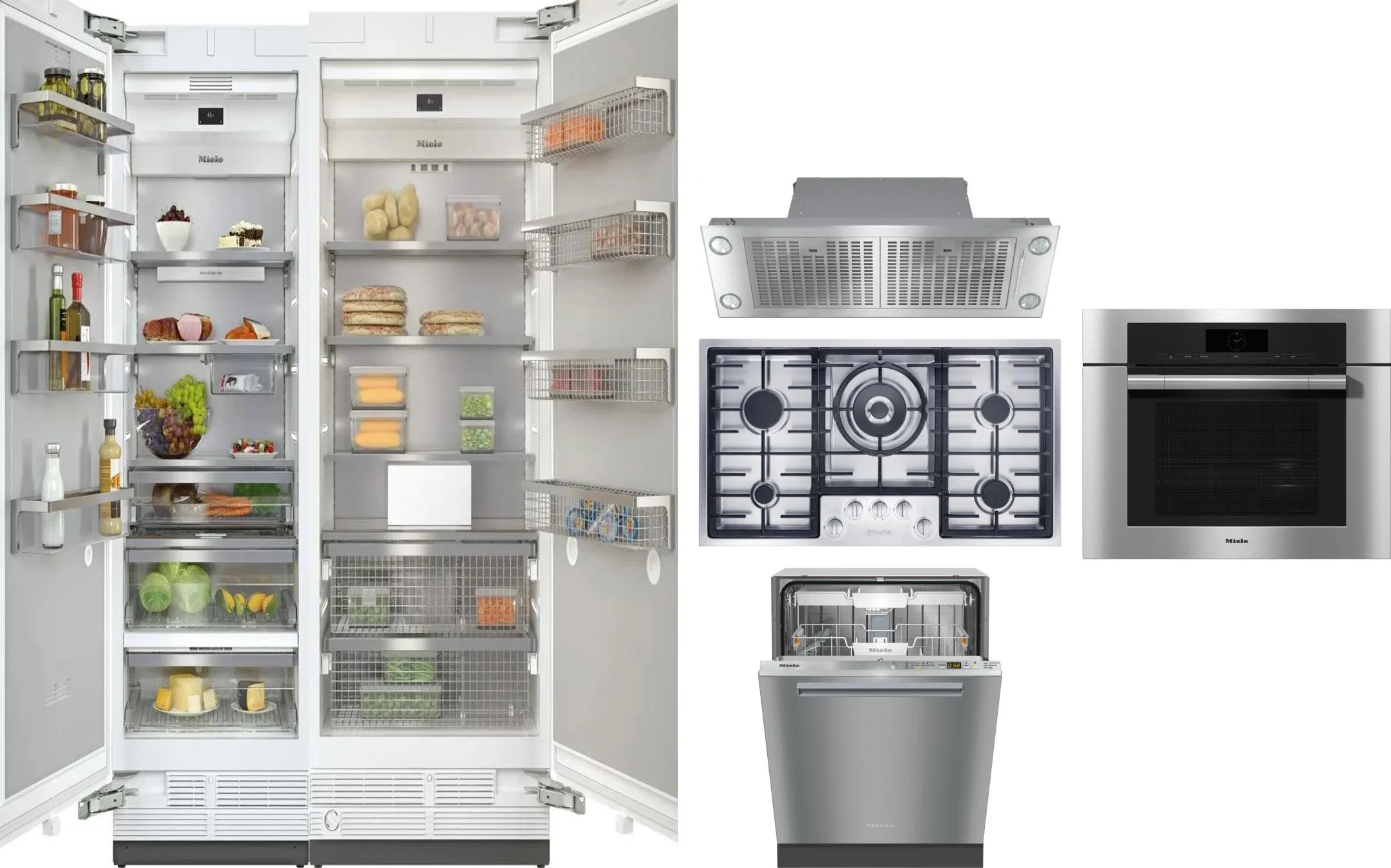Miele 6 Piece Package Includes Refrigerator, Freezer, Cooktop, Wall Oven, Hood And Dishwasher