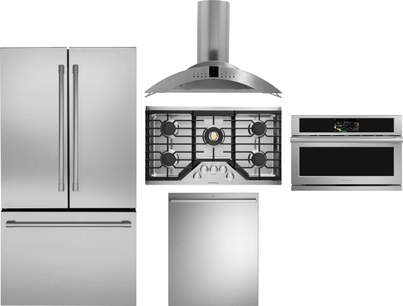 Monogram 5 Piece Package Includes Refrigerator, Cooktop, Wall Oven, Hood And Dishwasher in Stainless Steel