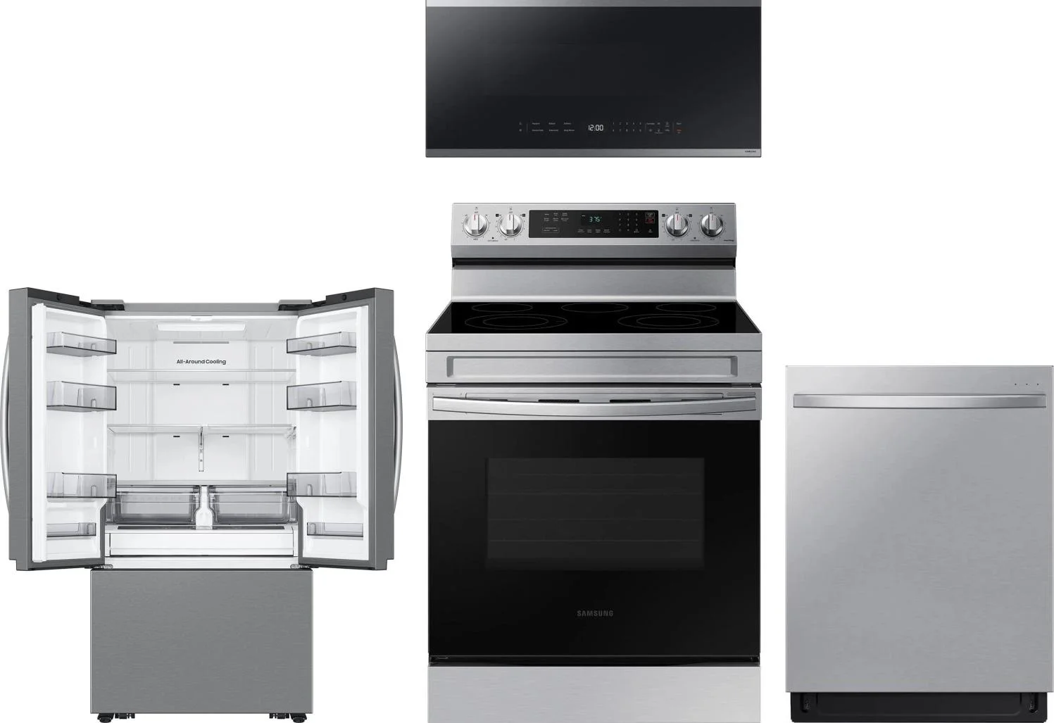 Samsung 4 Piece Package Includes Refrigerator, Range, Microwave And Dishwasher