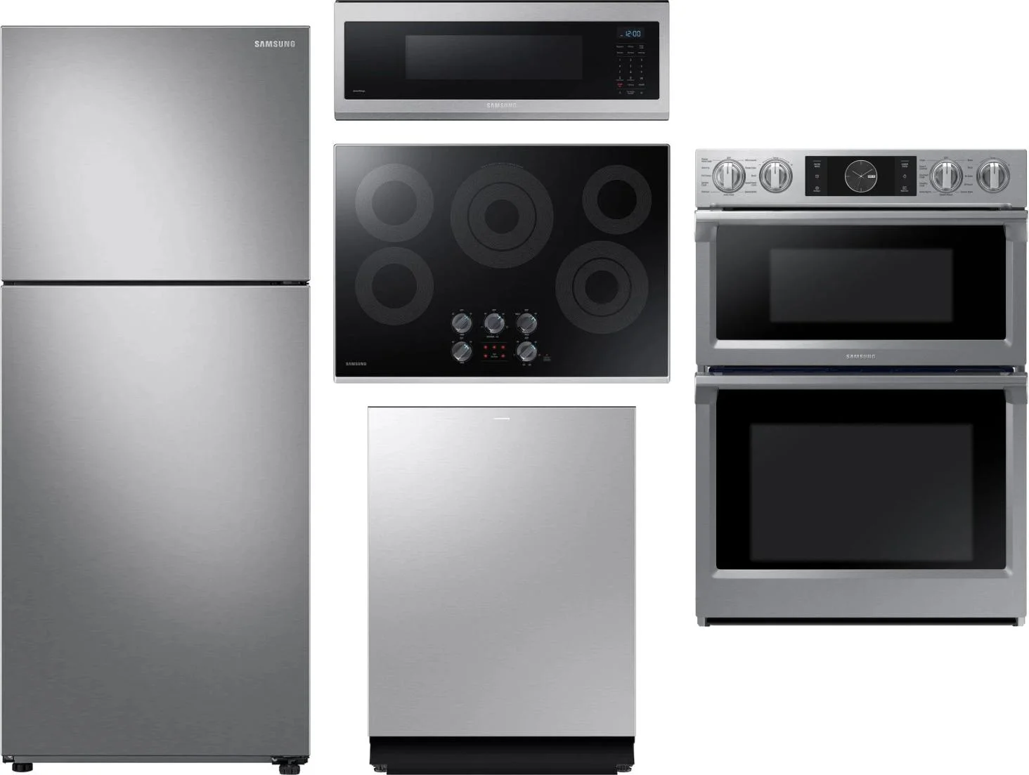Samsung 5 Piece Package Includes Refrigerator, Cooktop, Wall Oven, Microwave And Dishwasher