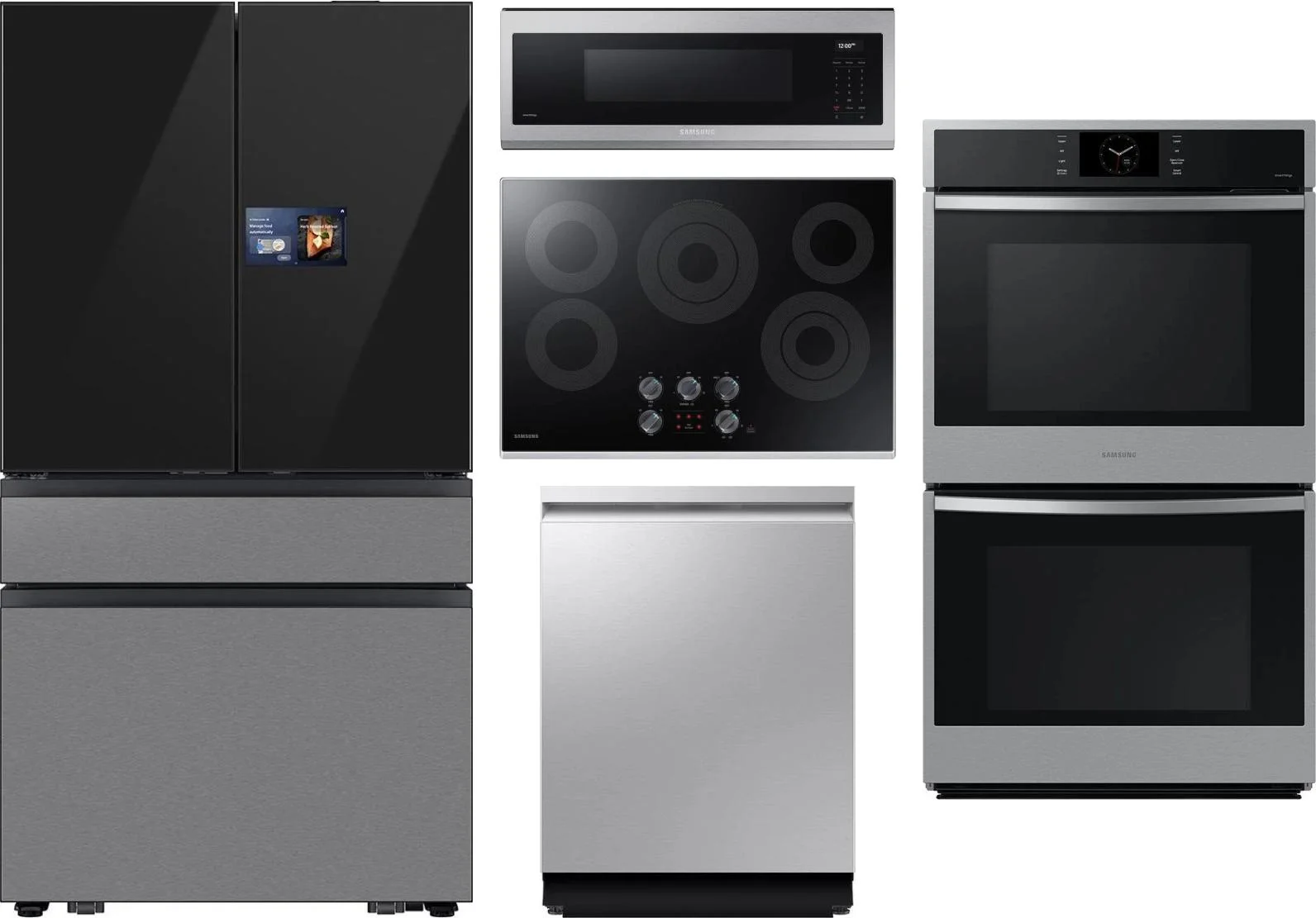 Samsung 5 Piece Package Includes Refrigerator, Cooktop, Wall Oven, Microwave And Dishwasher