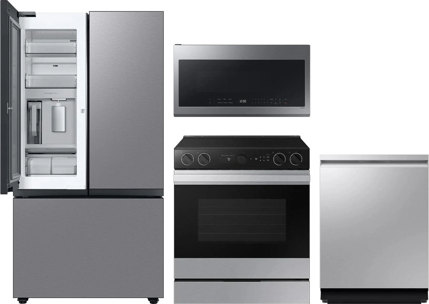 Samsung 4 Piece Package Includes Refrigerator, Range, Microwave And Dishwasher in Stainless Steel