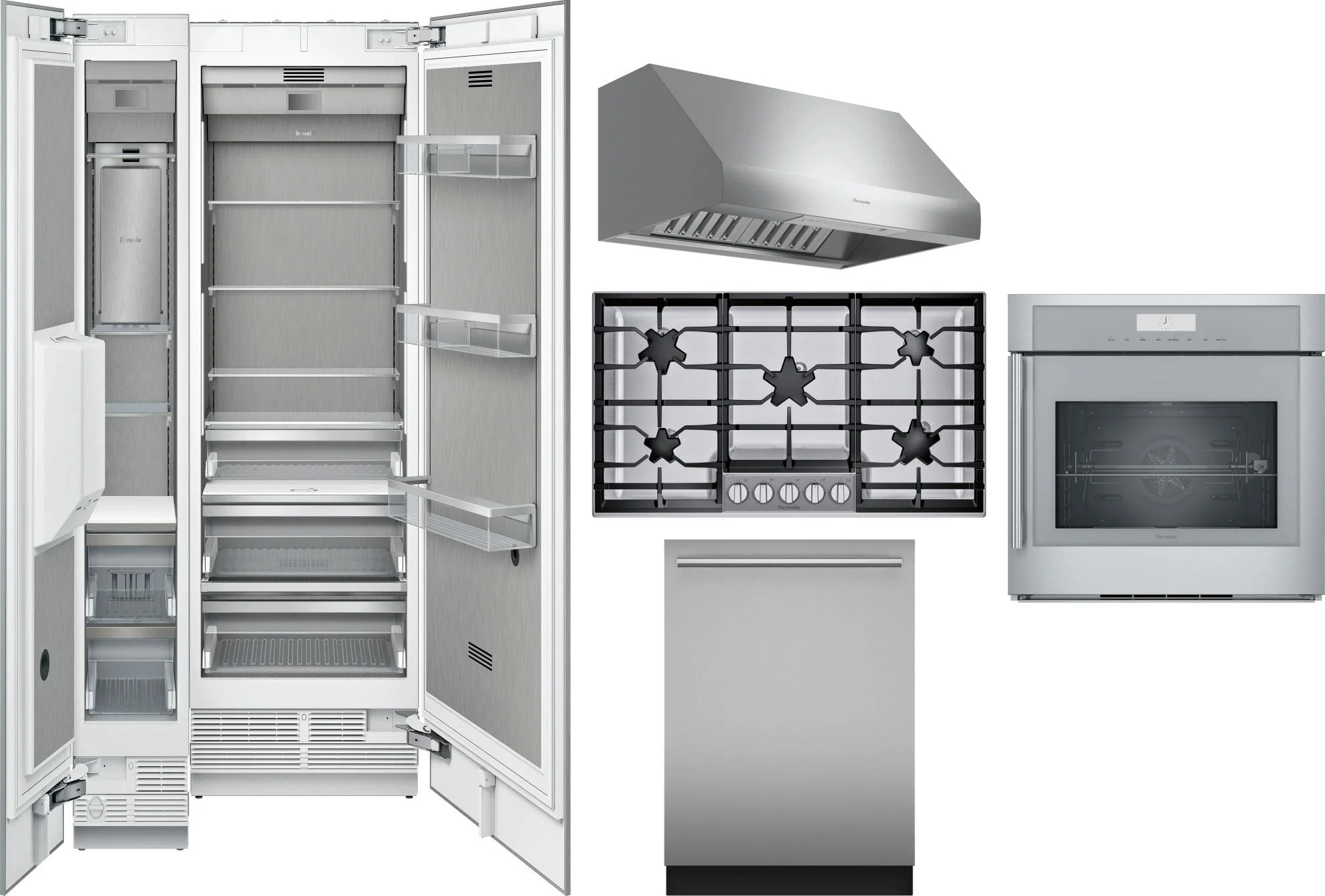 Thermador 6 Piece Package Includes Refrigerator, Freezer, Cooktop, Wall Oven, Hood And Dishwasher