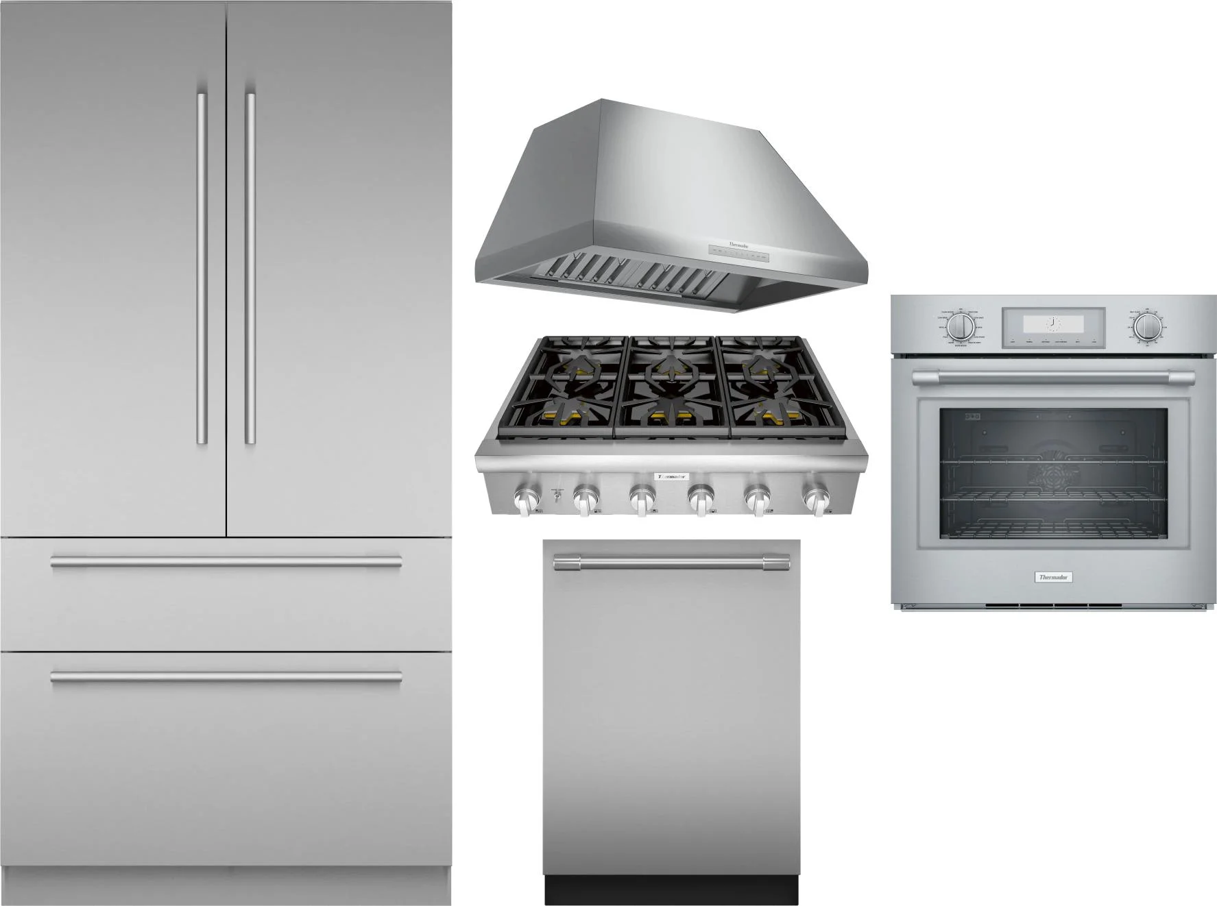 Thermador 5 Piece Package Includes Refrigerator, Cooktop, Wall Oven, Hood And Dishwasher
