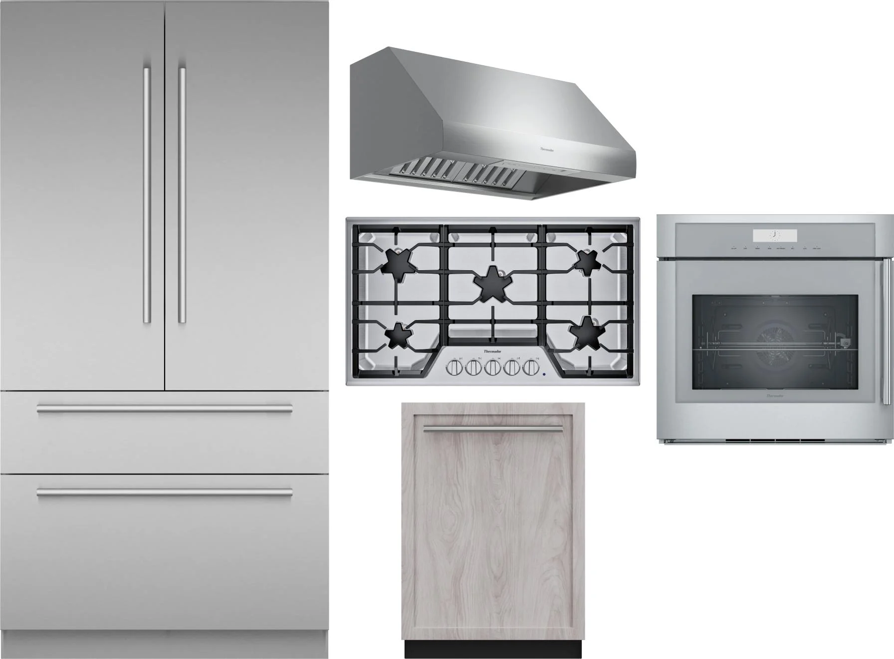 Thermador 5 Piece Package Includes Refrigerator, Cooktop, Wall Oven, Hood And Dishwasher