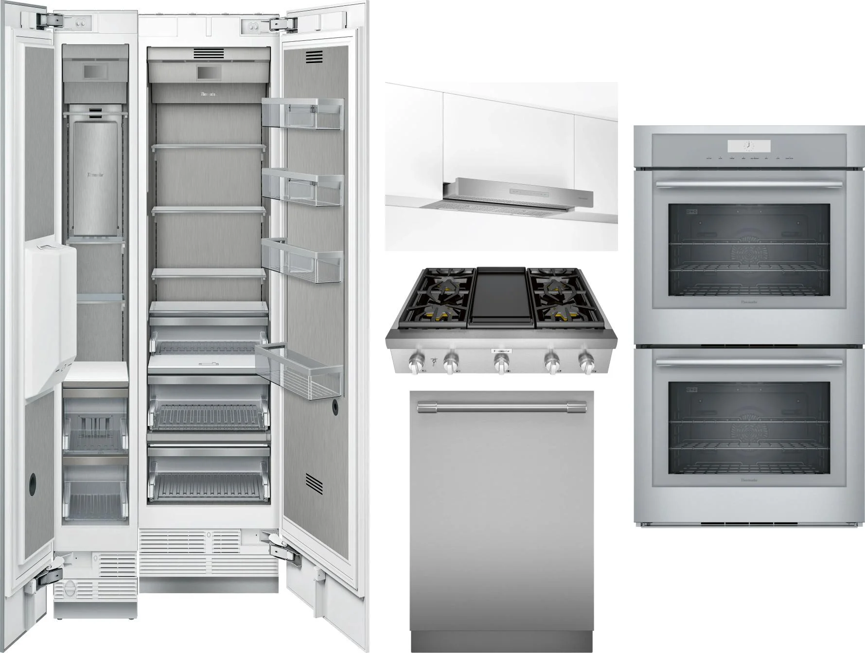 Thermador 6 Piece Package Includes Refrigerator, Freezer, Cooktop, Wall Oven, Hood And Dishwasher