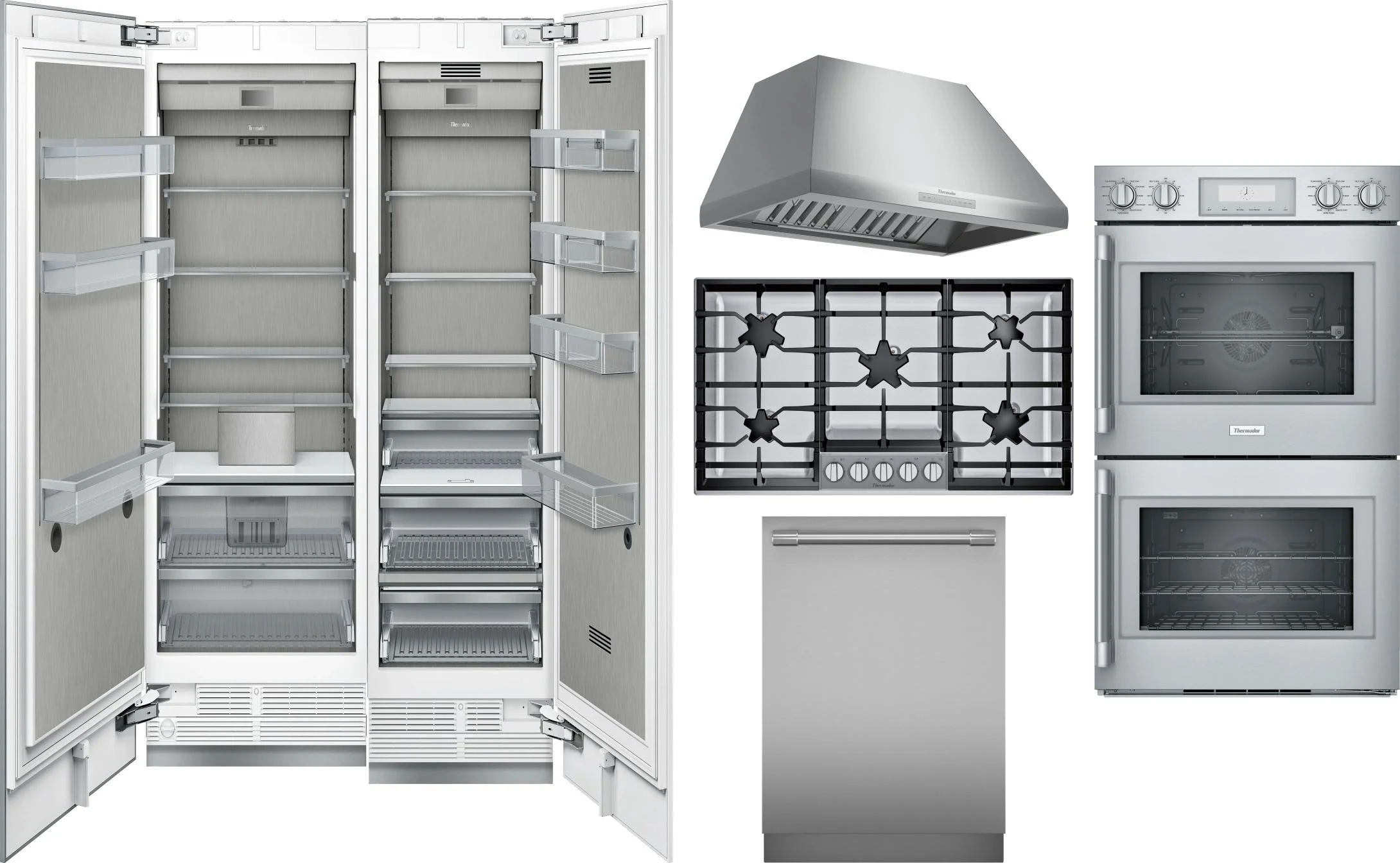 Thermador 6 Piece Package Includes Refrigerator, Freezer, Cooktop, Wall Oven, Hood And Dishwasher