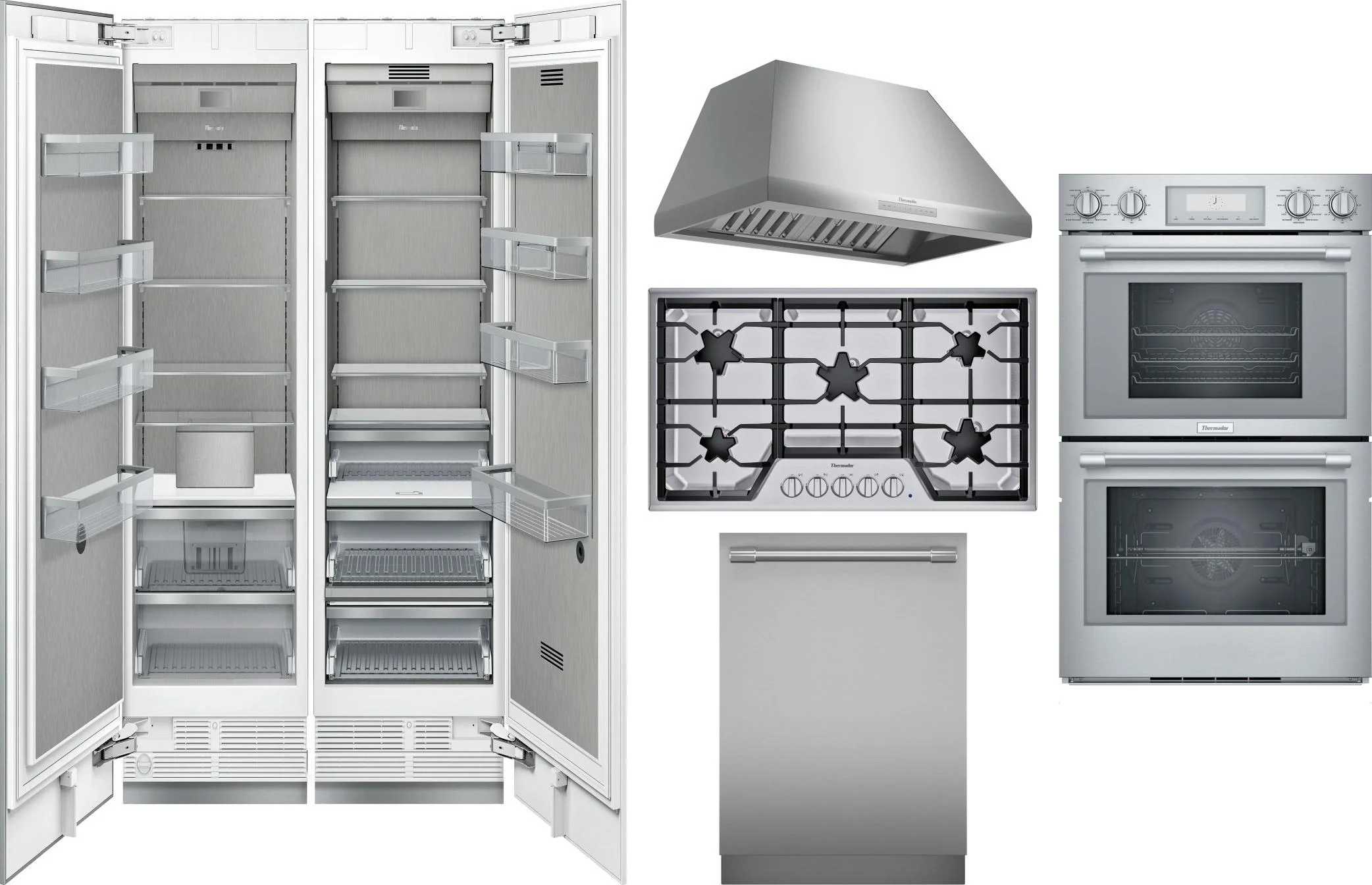 Thermador 6 Piece Package Includes Refrigerator, Freezer, Cooktop, Wall Oven, Hood And Dishwasher