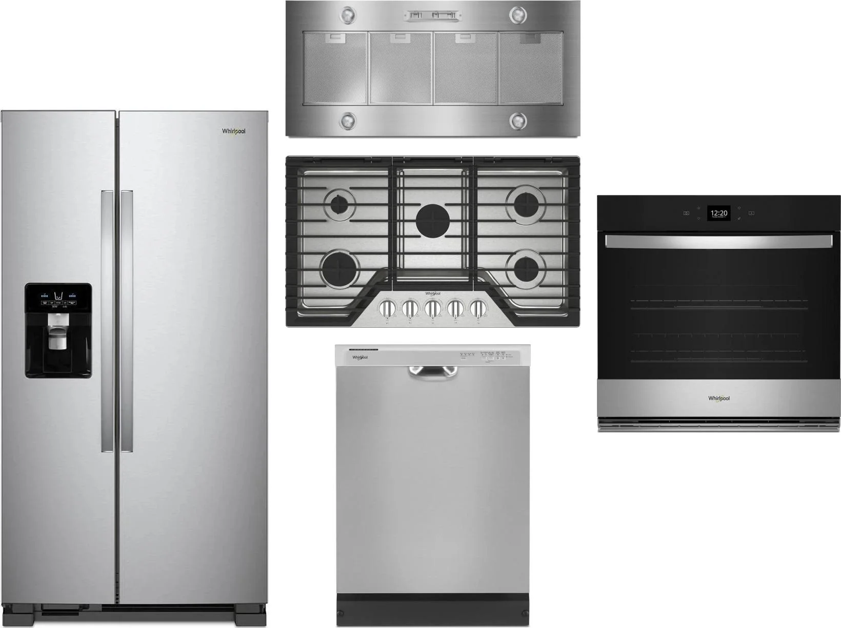 Whirlpool 5 Piece Package Includes Refrigerator, Cooktop, Wall Oven, Hood And Dishwasher