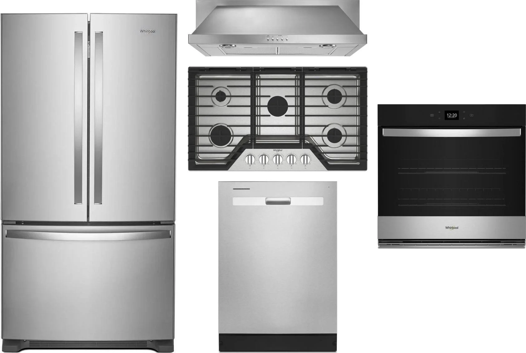 Whirlpool 5 Piece Package Includes Refrigerator, Cooktop, Wall Oven, Hood And Dishwasher