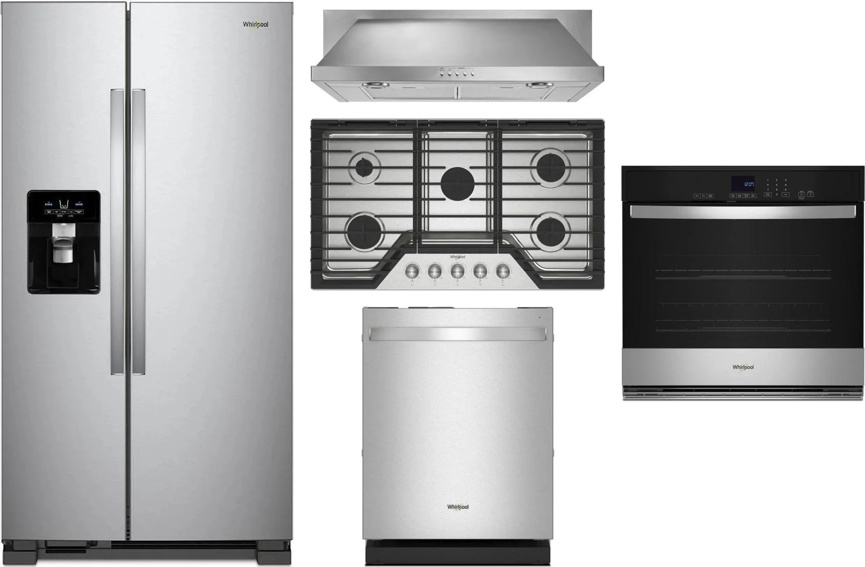 Whirlpool 5 Piece Package Includes Refrigerator, Cooktop, Wall Oven, Hood And Dishwasher