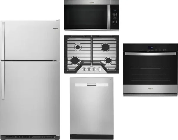 Whirlpool 5 Piece Package Includes Refrigerator, Cooktop, Wall Oven, Microwave And Dishwasher