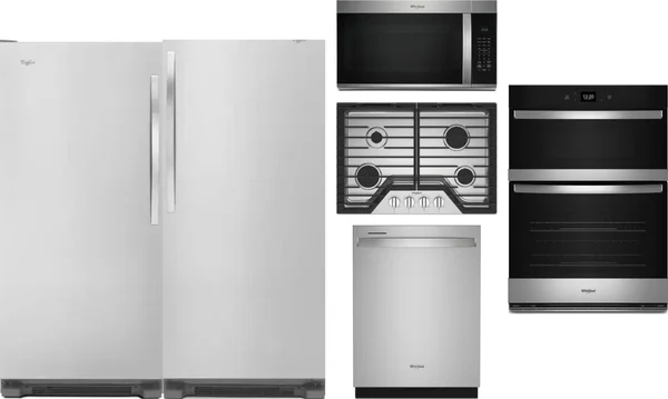Whirlpool 6 Piece Package Includes Refrigerator, Freezer, Cooktop, Wall Oven, Microwave And Dishwasher