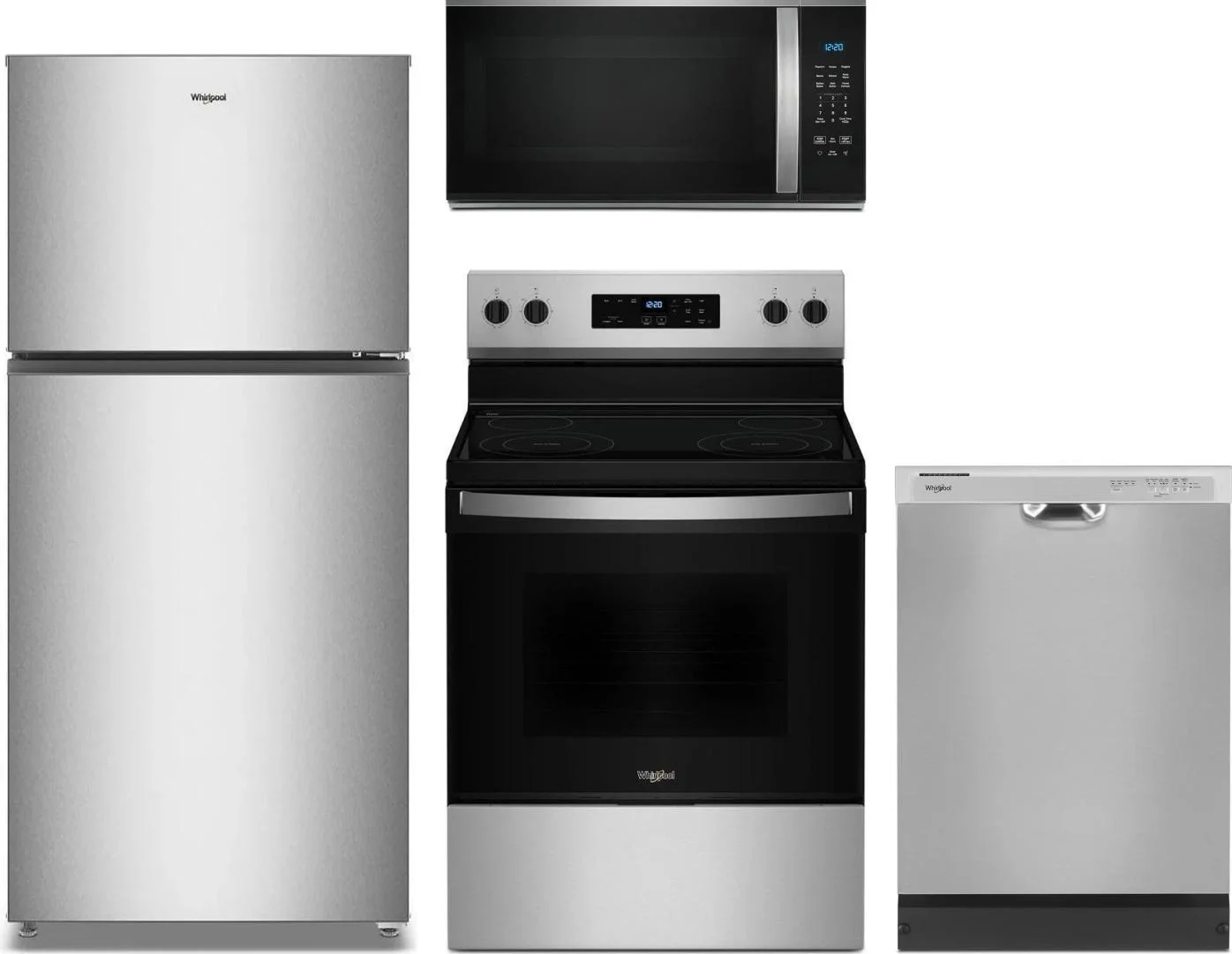 Whirlpool 4 Piece Package Includes Refrigerator, Range, Microwave And Dishwasher