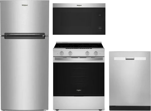 Whirlpool 4 Piece Package Includes Refrigerator, Range, Microwave And Dishwasher