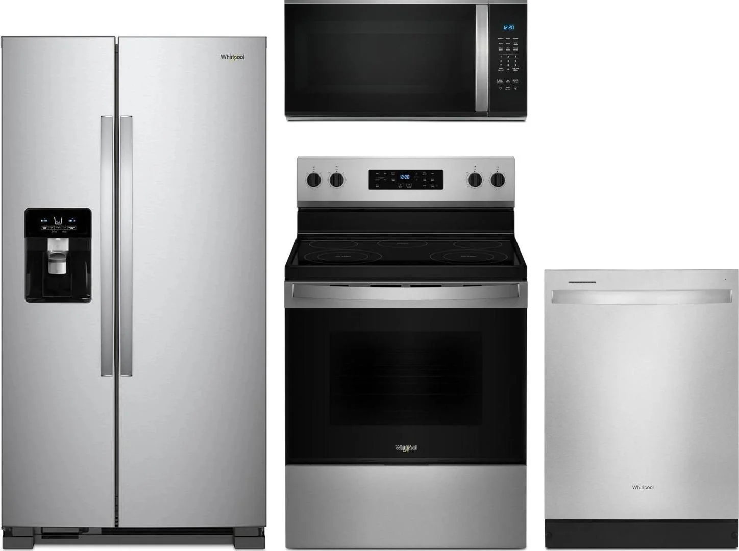 Whirlpool 4 Piece Package Includes Refrigerator, Range, Microwave And Dishwasher
