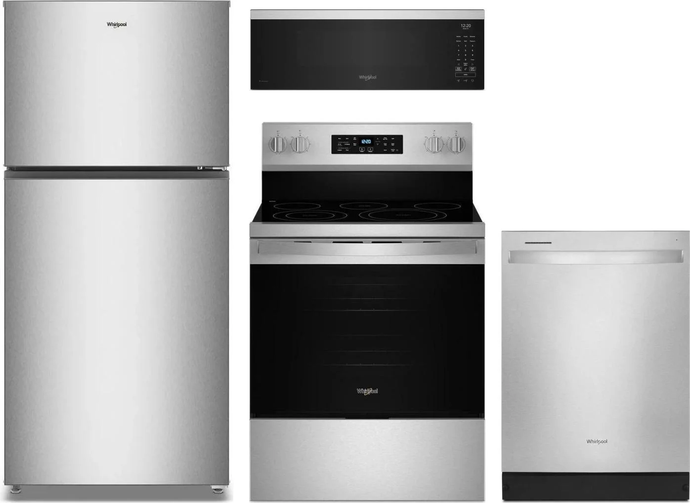 Whirlpool 4 Piece Package Includes Refrigerator, Range, Microwave And Dishwasher