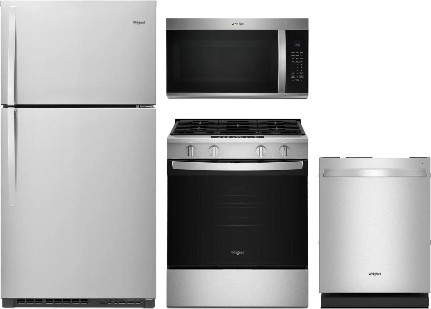 Whirlpool 4 Piece Package Includes Refrigerator, Range, Microwave And Dishwasher