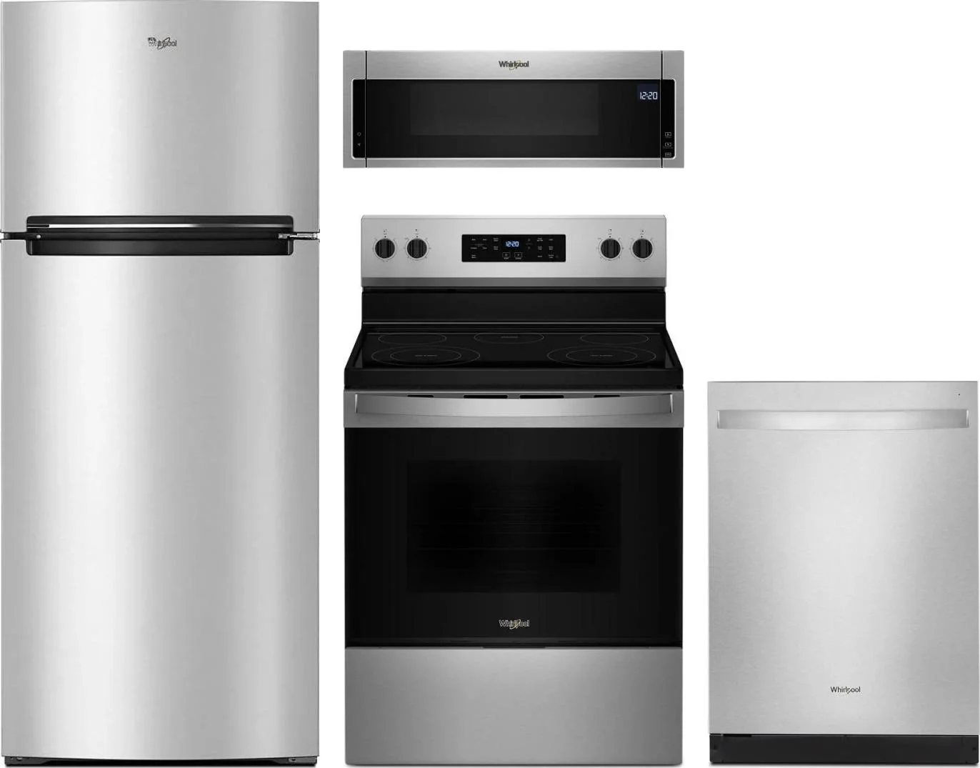 Whirlpool 4 Piece Package Includes Refrigerator, Range, Microwave And Dishwasher in Stainless Steel