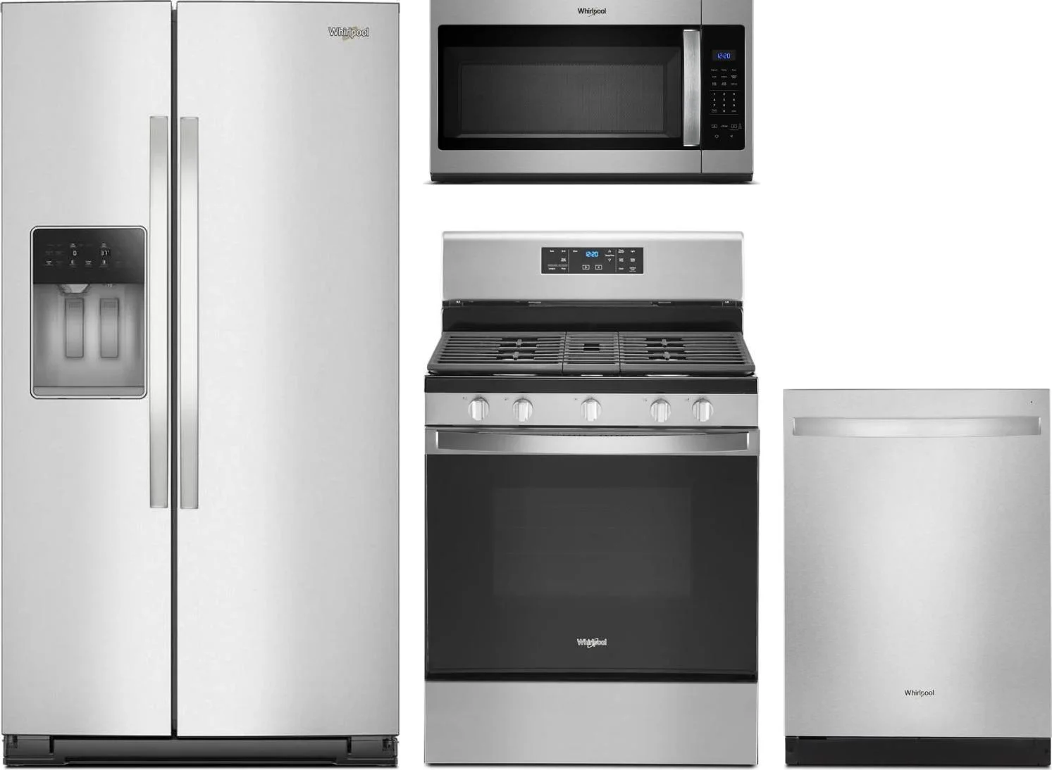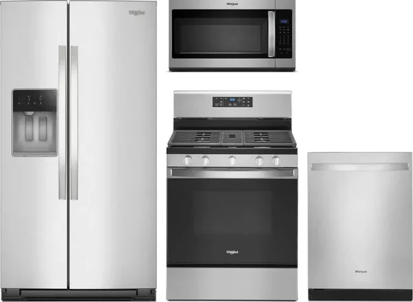 Whirlpool 4 Piece Package Includes Refrigerator, Range, Microwave And Dishwasher in Stainless Steel