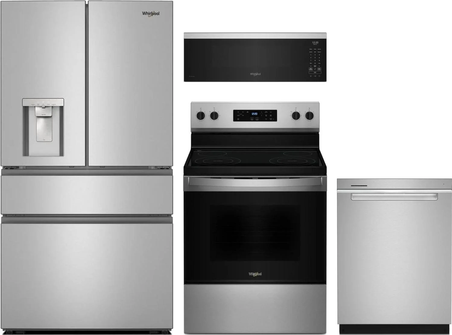 Whirlpool 4 Piece Package Includes Refrigerator, Range, Microwave And Dishwasher
