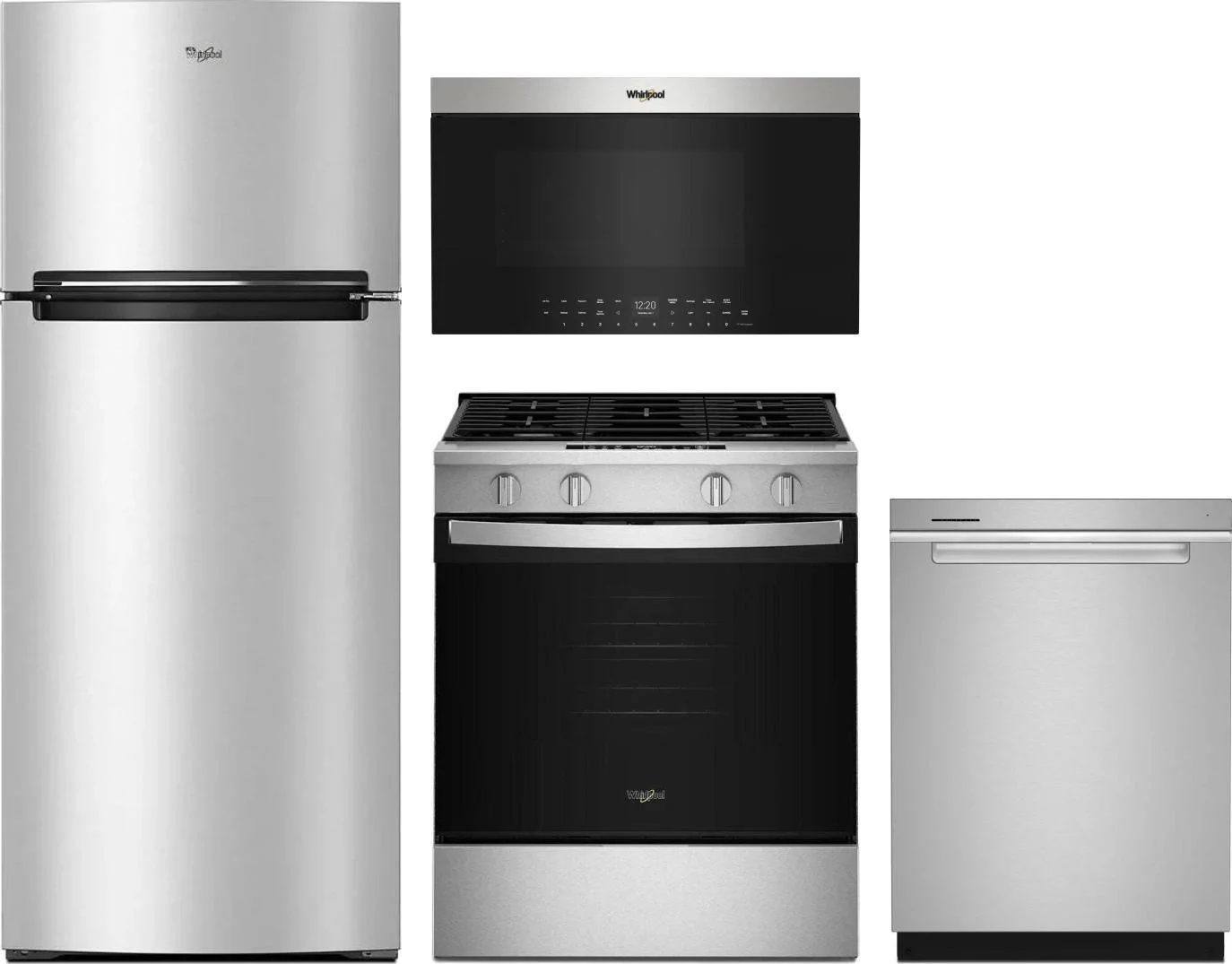 Whirlpool 4 Piece Package Includes Refrigerator, Range, Microwave And Dishwasher