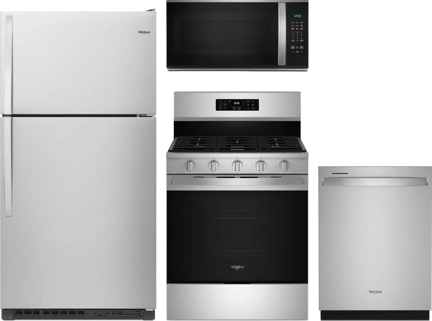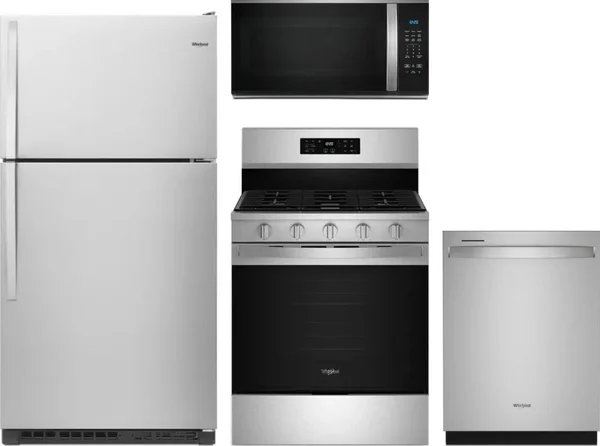 Whirlpool 4 Piece Package Includes Refrigerator, Range, Microwave And Dishwasher