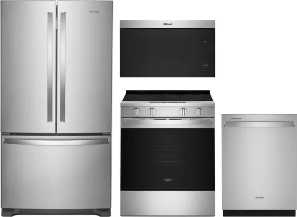 Whirlpool 4 Piece Package Includes Refrigerator, Range, Microwave And Dishwasher in Stainless Steel