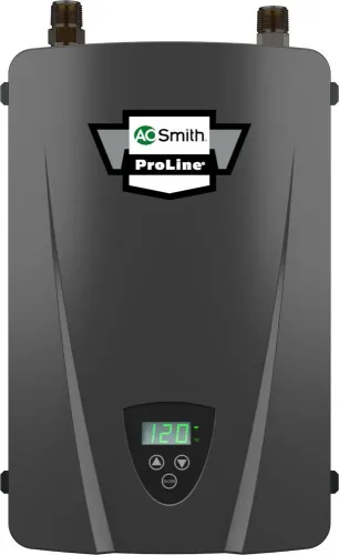 The 240V / 12.2 kW 2-Chamber Commercial Electric Tankless Water Heater can provide continuous hot water when sized appropriately. A. O. Smith's Commercial Electric Tankless water heaters only heat water when needed, leading to potential energy and utility bill savings. These models are easy to install and save valuable storage space--they can be wall mounted, using standard 3/4-in NPT water connections and do not require venting. Designed with a soft start, the electric tankless produce a soft electric draw when powering on, reducing light dimming impact. Electric tankless water heaters typically require greater electrical supply capacity than standard tank-type models. Please check with your local professional to ensure your home's power supply and breaker panel can support this model. A. O. Smith offers the largest commercial product selection available, including the most specified commercial unit in the U.S. We offer more than 500 different commercial models, including gas fired, oil-fired and electric configurations, ranging in capacities from 5 to 10,000 gallons, with input range from 50,000 BTU to the equivalent of 4,000,000 BTU. Our comprehensive line is the natural fit for spec jobs requiring everything from the smallest commercial installation up to the largest multi-structure complex.