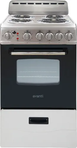 Save valuable kitchen space without sacrificing performance with the Avanti 20-Inch Compact Electric Range-the ideal cooking solution for small-space living. Whether you're outfitting a studio apartment, RV, tiny home, office break room, condo, or vacation property, this space-saving electric range offers full-size features in a compact footprint. Designed to fit seamlessly into tight kitchens, this versatile appliance helps you make the most of your available space without compromising on style or cooking power. Measuring just 20 inches wide, this electric range includes four durable coil burners to meet a variety of cooking needs. The cooktop is equipped with three 6-inch burners for everyday use and one larger 8-inch burner for high-heat tasks like boiling water or searing. Each burner has individual controls, giving you the flexibility to simmer, saut(eback), boil, and fry with ease. The oven section provides ample room for baking and roasting and includes a built-in broiler with a broiling pan, perfect for crisping up your favorite dishes. The oven also features a convenient pull-out storage drawer at the bottom with a built-in handle-ideal for storing pots, pans, baking trays, or other kitchen essentials and helping to keep your kitchen organized. This Avanti compact range is perfect for those who value functionality, efficiency, and smart design. With its sleek white finish, easy-to-use controls, and durable construction, it delivers reliable performance in a size that suits your space. Whether you're preparing a quick meal or a full dinner, the Avanti 20-Inch Electric Range is your compact cooking companion, combining style and convenience for small kitchens everywhere.