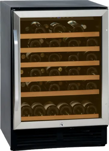 Keep wine perfectly chilled in this 50-bottle capacity wine chiller from Avanti. This wine fridge is ideal for the living room, office, man cave, she-shed, bar, basement, or anywhere you want to beautifully store your wine collection. Easily view your wine choices through the glass door and pull out the vinyl-coated shelves with wooden fronts to select the bottle of your choosing. This wine cooler features automatic defrost so your wine stays perfectly chilled and specially designed shelves for Burgundy bottles. Select the right settings at the touch of a button and monitor the temperature (C(degree)/F(degree)) with the temperature monitor display.