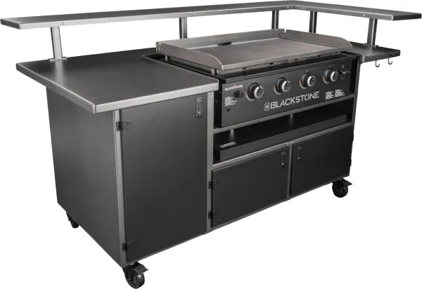 Elevate your outdoor cooking and bring the fun of a teppanyaki restaurant to your backyard with the 5 Person Chef s Table with 36 Drop-in Griddle. The drop-in griddle features a 36" Omnivore Griddle Plate with faster recovery and preheat times and better fuel efficiency, so you'll cook more and wait less. With ample storage space that includes heavy-duty weather resistance, your tools will stay dry so you can continue to cook breakfast, lunch, and dinner for years to come! Whether you re celebrating a special occasion or wanting great food on a weeknight, the 5 Person Chef's Table will exceed expectations.