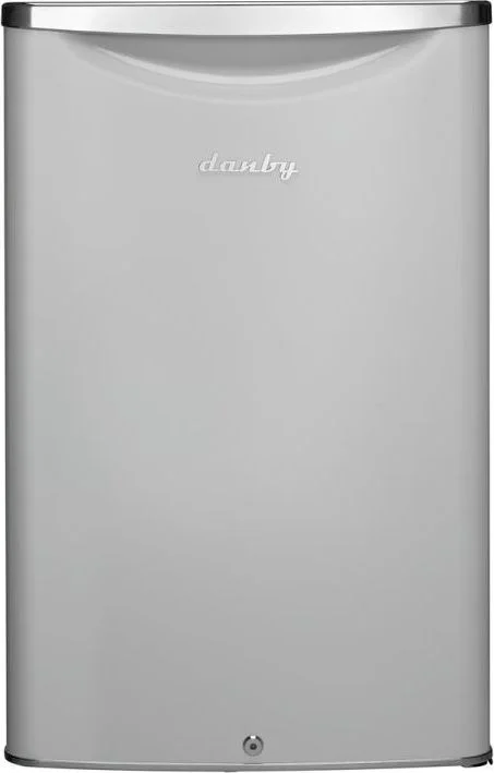Drawing inspiration from mid-century styling and simplicity, Danbys patented Contemporary Classic collection of compact refrigerators reimagine retro for the modern consumer. Featuring Danbys exclusive retro-inspired curved door design, metallic door finish, door lock, rubber-grip ergonomic chrome handle and stylized chrome worktop, its exterior features are only outmatched by its signature black interior. Boasting 4.4 cubic-feet (124 liters) of storage and cooling space, it features two and a half tempered glass shelves for maximum storage versatility and a vegetable crisper with glass top. Theres more than enough room for larger bottles and the spacious unit helps keep electricity bills in check with its Energy Star rating and state-of-the-art mechanical thermostat. Maintenance and cleaning are as simple as can be with the automatic defrost system. It also includes an efficient CanStor beverage dispenser and reliable interior white LED light. This model is built for convenience as the reversible door hinge allows you to adjust it for either left or right-handed opening.