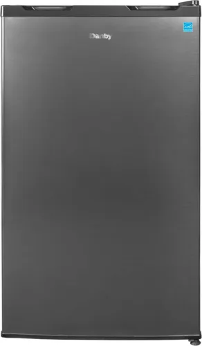 Add extra refrigeration space with Danbys black stainless steel compact fridge, perfect for dorms, home bars, offices, or rec rooms. Enjoy a generous 3.1 cubic feet (88 L) of cooling space for extra beverages, snacks, and more. Cut down on clutter with 1-1/2 width adjustable glass shelves and 4 door bins offering maximum storage versatility. Enjoy integrated door shelving with 2-liter bottle storage and our CanStor beverage dispenser, which holds 8 355 ml cans on an angle to optimize fridge space. Easily find your beverages, vegetables, or fruit with the bright LED interior lighting system. Reduce your electricity bill and save on energy with this ENERGY STAR rated mini fridge. This small refrigerator also features a clever, reversible door hinge that enables you to adjust it for a left or right-handed opening via the integrated handle.