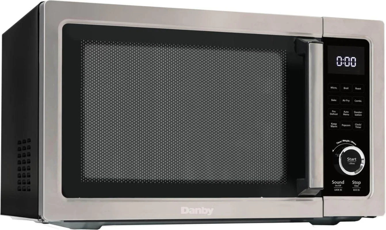 The Danby 5-in-1 multifunctional stainless-steel microwave packs a lot into a 1.0 cu. ft. (28 L) microwave: air fry, convection roast/bake, broil/grill, microwave, combination micro/convection or micro/grill, and 1,000 watts of cooking power. It can air fry your favorite foods with little to no oil! French fries, onion rings, chicken, seafood, spring rolls, you name it! On top of its air fry capabilities, this unit has nine convenient menu options, a broil/grill function that can be set anywhere from 5-95 minutes, and a combination micro/convection or micro/grill cooking option. You can also use as a warming oven perfect for warming plates, making yogurt, rising bread or just keeping food warm. You can also defrost your meals by weight or by time and deodorize the unit's cavity to help remove unwanted smells. The child/control lock-out option guarantees a safe environment for your child!