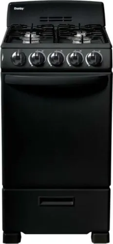 You dont need to be a world-class chef to enjoy cooking with this ultra-compact gas range by Danby. This attractive model may only be 20-inches wide, but it comes with everything you need for fine dining. This includes an oven and four burners. This trendy appliance provides 2.3 cubic feet of oven space making it ideal for small-space living such as apartments and cottages. It boasts an easy-to-clean pyrolytic blue oven interior for easy clean up. The oven dishes out a powerful 13,000 BTU of baking power. This dependable gas range comes with an angular control panel with push-and-turn front knobs for added safety and includes two oven racks with four adjustable positions and safety stops for optimal cooking. This range is ADA compliant and offers a 12-month warranty on parts and labor with convenient in-home service.