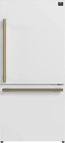 31" Milano Espresso Bottom Freezer Right Swing Door Refrigerator in White, 17.2 cu. ft. Additional Antique Brass Handles Included