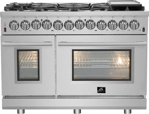 Forno Massimo 48-Inch Freestanding Dual Fuel Range, 8 Burners, Double Convection Ovens