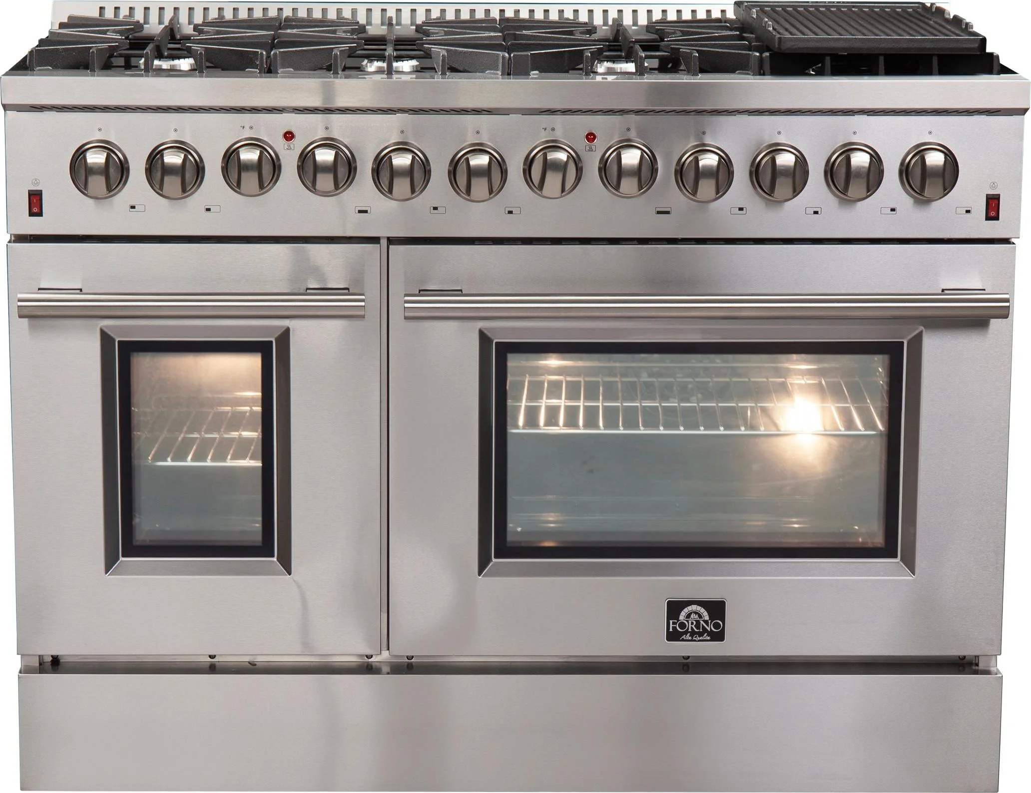 Forno Galiano 48-Inch Freestanding Dual Fuel Range, 8 Burners, Double Convection Ovens