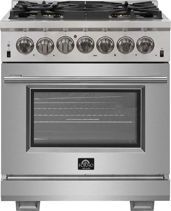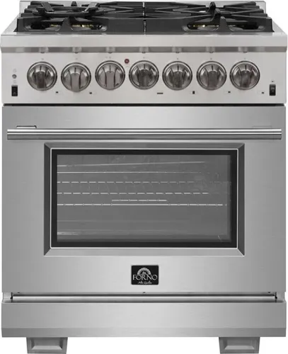 Forno Capriasca 30-Inch Freestanding Dual Fuel Range, 4 Burners, True Convection Oven