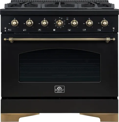 Forno Antico 36-inch Gas Range with 6 Burners, Convection Oven, Black and Antique Brass Finish