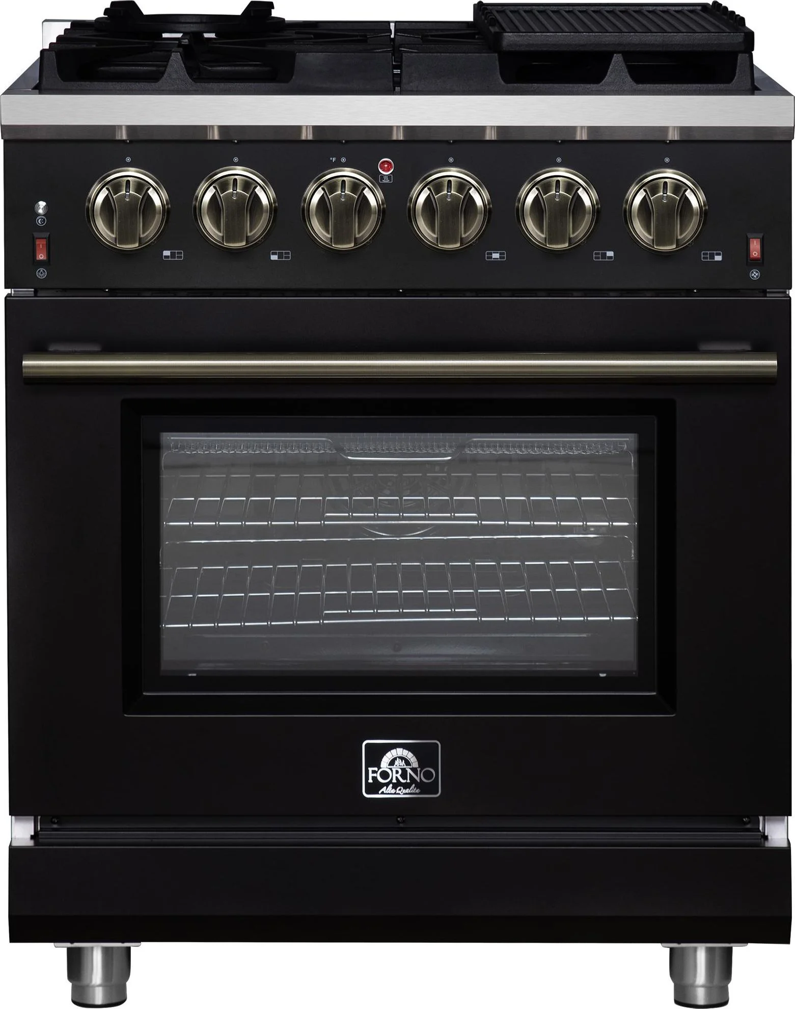 Forno Massimo 30-Inch Black Freestanding Gas Range, 5 Burners, True Convection Oven