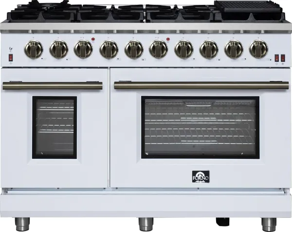 Forno Massimo 48-Inch White Freestanding Gas Range, 8 Burners, True Convection Oven
