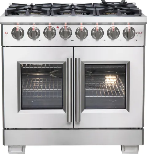 Forno Capriasca 36-Inch Freestanding French Door Dual Fuel Range, 6 Burners, True Convection Oven