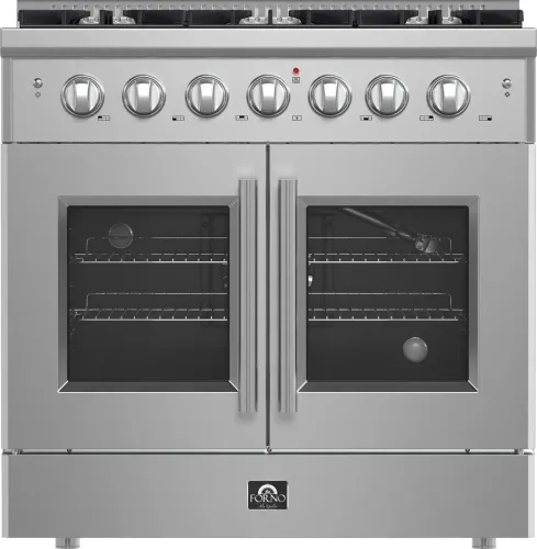 Forno Galiano 36-Inch Freestanding French Door Gas Range, 6 Burners, Convection Oven, Energy Efficient